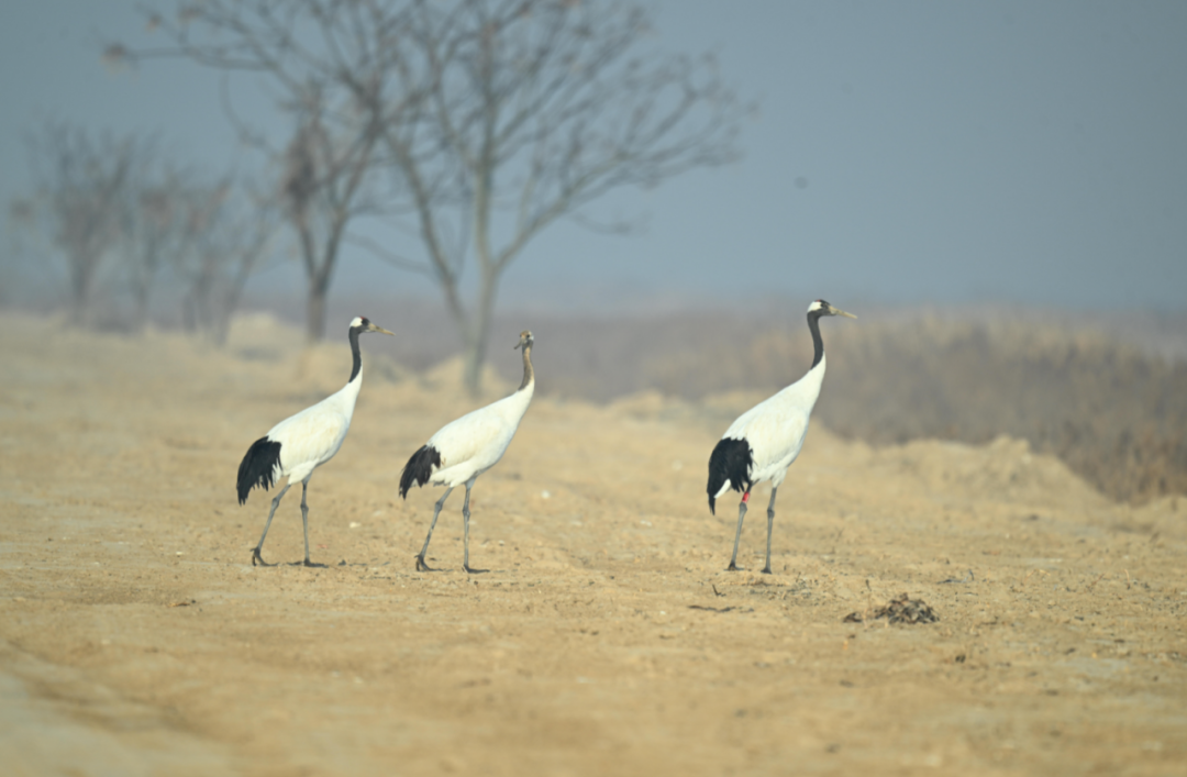 本次调查范围涵盖滨海湿地、湖荡湿地、市区湿地公园等15个分区60个点位,采用样线法、样点法、小区直数法开展同步监测。 本次鸟类调查记录到野生鸟类16目39科117种141162只(包括珍禽保护区核心区)。其中水鸟种类61种134828只,占比95.51%。监测到IUCN受威胁种类11种9310只,包括极危鸟类白鹤1种2只,濒危鸟种东方白鹳1种622只,易危8种8684只。 中:丹顶鹤 左右:白鹤 调查显示珍禽保护区、东台条子泥湿地、大丰沿海湿地、建湖等地鸟类资源丰富、数量庞大,充分体现了盐城湿地生态的优越性和修复成果。鸟类作为生态环境质量的“晴雨表”,其良好的生存状态印证了生态修复和环境保护的显著成效。 盐城是东亚-澳大利西亚候鸟迁飞路线上的关键节点,本次鸟类调查及时精准掌握全市湿地鸟类资源状况,也为加强生态保护、优化遗产地的保护管理工作提供重要科学依据。 丹顶鹤一家三口