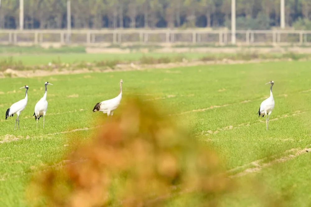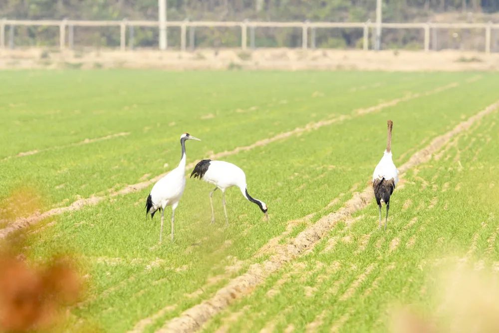 11月20日有观鸟爱好者在盐城大丰建川养殖基地拍到数只野生丹顶鹤©周晨曦丹顶鹤为大型涉禽是国家一级保护动物裸出的头顶红色眼先、脸颊、喉及颈侧黑色身体几近纯白色在中国文化中象征幸福、吉祥、忠贞和长寿&n...