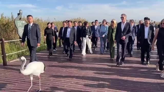 10月28日,省委书记信长星在盐城会见美国加利福尼亚州州长纽森一行。纽森一行来到丹顶鹤保护区,边走边看,对丹顶鹤在东北地区繁殖、到盐城越冬的过程问得仔细。一只一岁多的丹顶鹤走在人群前,当起了向导,体态...