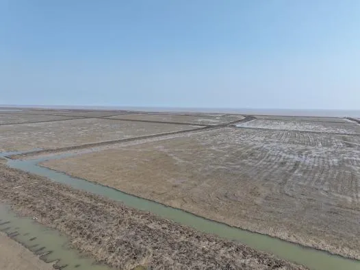 沿着海岸线向南,大丰四卯酉区域的滩涂经历了一场“蜕变”:这是在互花米草治理后的第一个春天,曾经被互花米草侵占的滩涂逐渐回归“原生态”。期待这片重获“呼吸”的滩涂,成为鸟类向往的“生命乐园”。